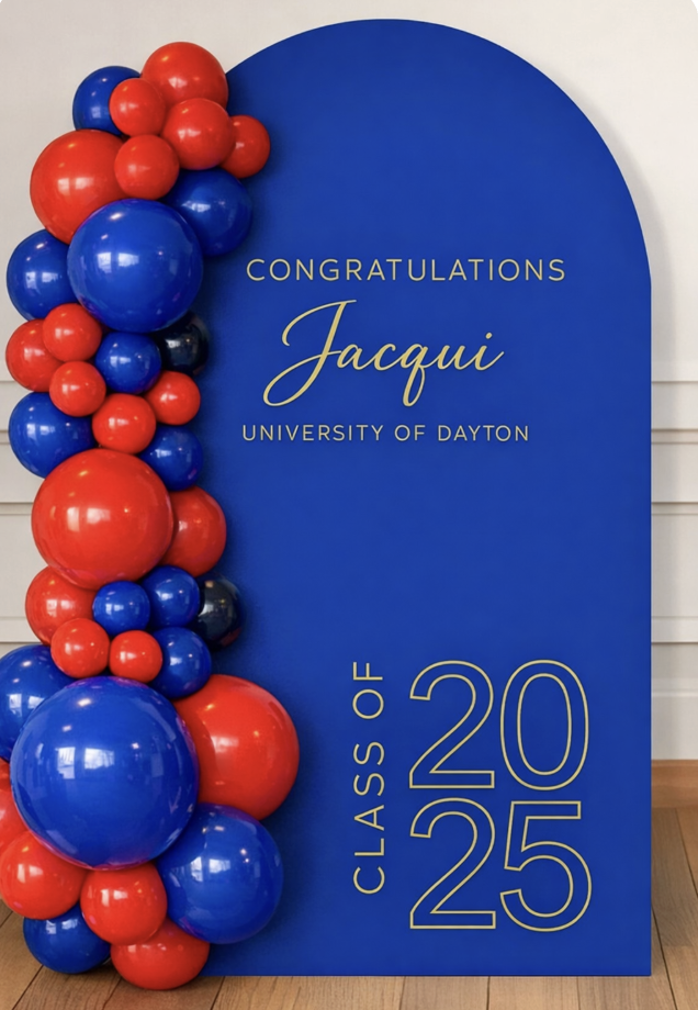Create a moment your guests will not be able to resist photographing. Our custom backdrops are designed to anchor your celebration and highlight your graduate in style.